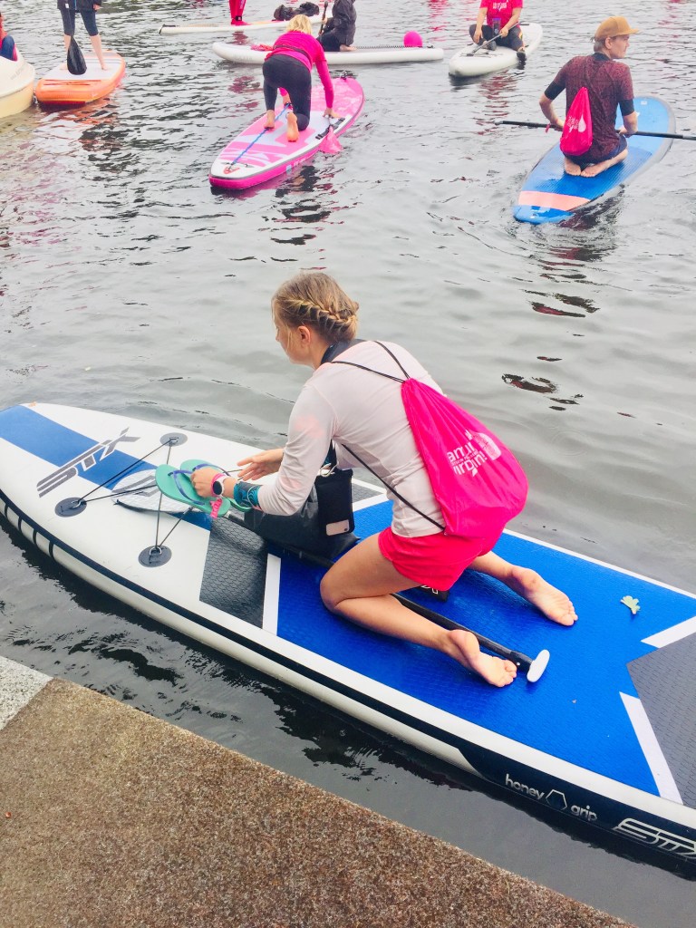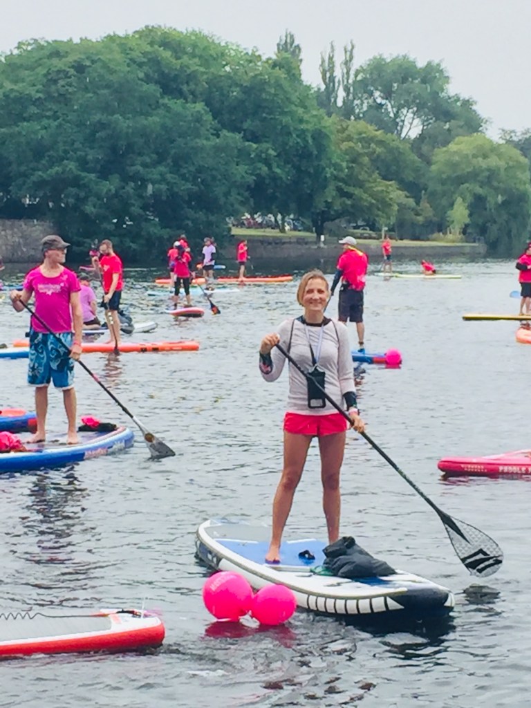 Da ich selbst sehr gern mit meinem Stand up Paddle auf dem Wasser unterwegs bin und ich mich für das Thema Brustkrebs engagiere, war dies ein richtig gutes Event wo ich unbedingt teilnehmen wollte. Trotz des Regens der immer mal auf uns einprasselte ließ ich mich nicht stoppen.