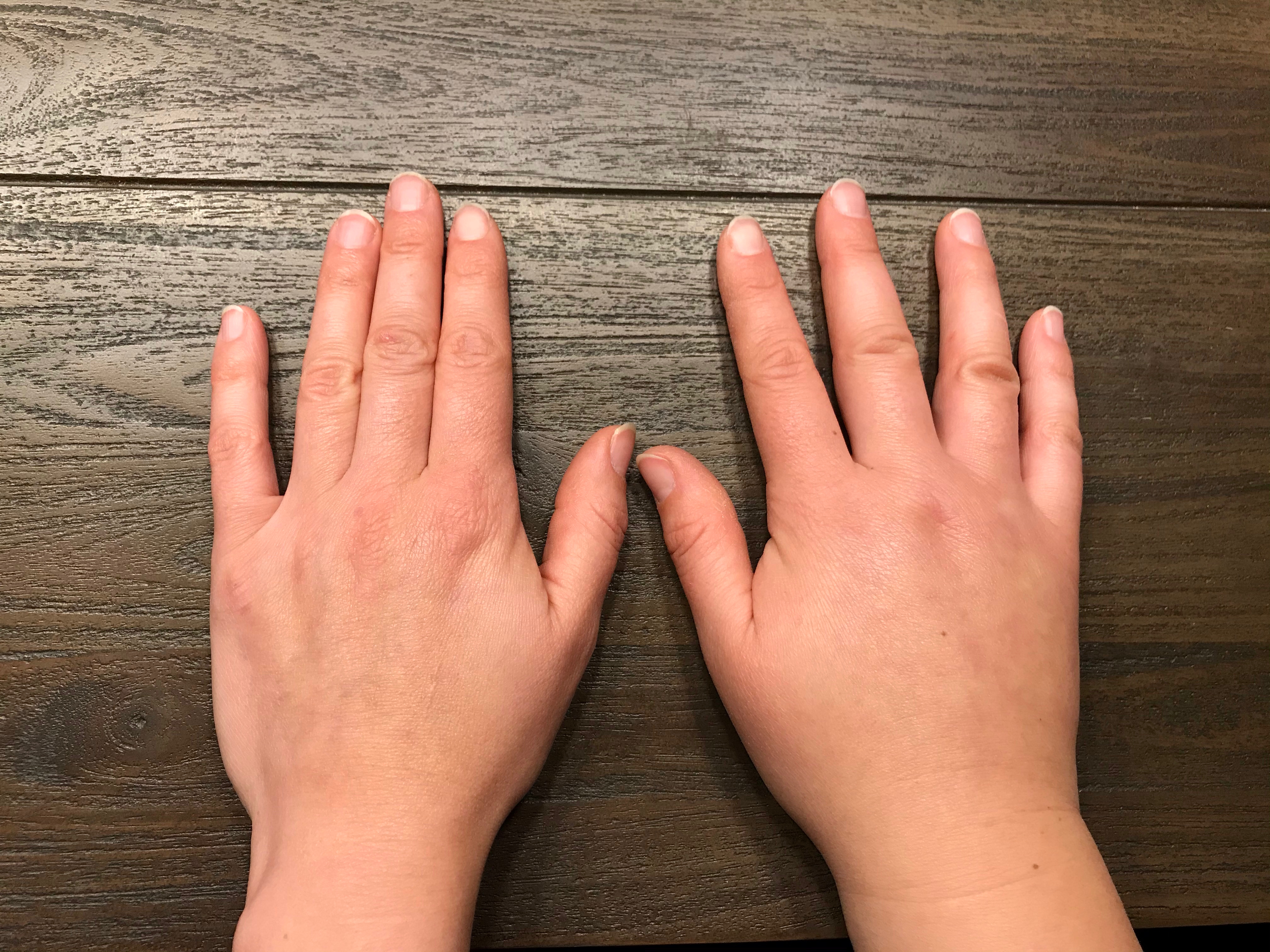 „Durch das Entfernen der Lymphknoten kann ein Lymphödem entstehen,“ sagte meine Onkologin. Das muss aber nicht so sein. Durch das Entfernen der 10 Lymphknoten war das Lymphsystem gestört und musste sich neu finden. Manchmal aber kann es sein, dass diese Bahnen nicht neu zusammenfinden und es sich dadurch staut. Anfangs war auch nichts von einem Lymphödem zu sehen. Die rechte Brust entfernten die Ärzte 2014, 2016 bekam ich einen Expander in meine rechte Brust eingebaut. Dieser dehnte meine Haut, so dass irgendwann eine Silikonbrust dort entstehen konnte. Bis dahin war alles noch fein. Beim Einbau des Silikons 2017 fing alles an. Nach ein paar Wochen wurde meine Hand dick, dicker, und irgendwann richtig prall. Als hätte ich zugenommen oder total viel Wasser in der Hand. Mein Arm ging noch, es war fast nur meine Hand die dick war. Manchmal spannte diese so sehr, dass es weh tat.