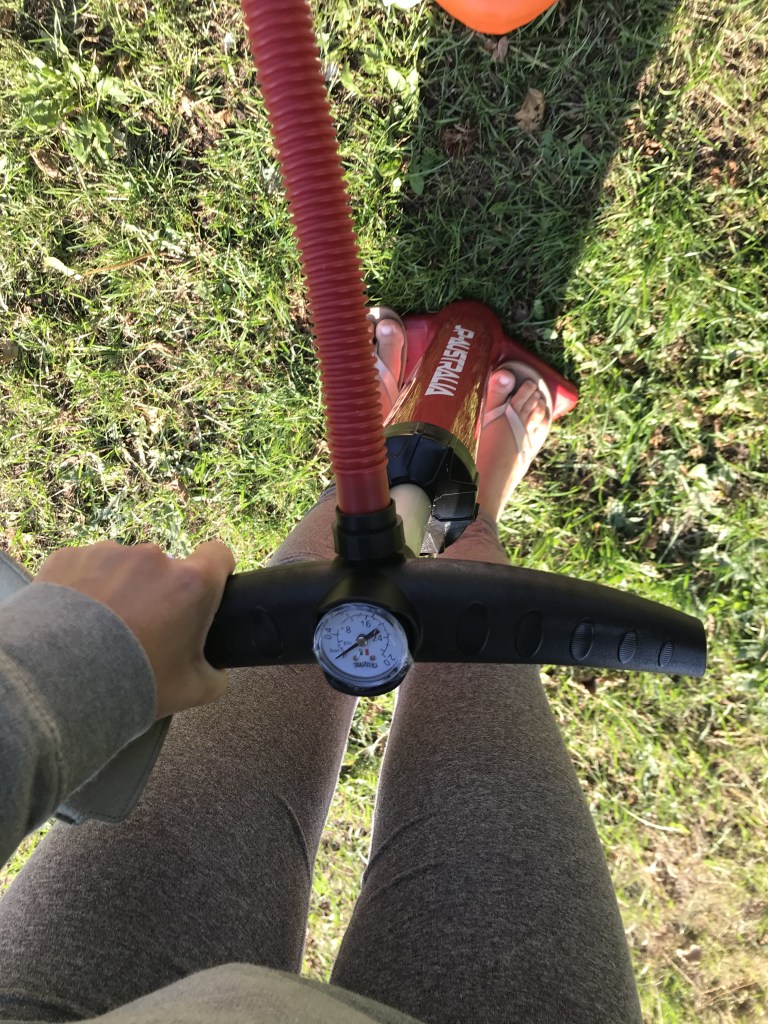 Am Anfang des Aufpumpens am besten den Schalter auf 2 legen, so dass in kurzer Zeit viel Luft in das Board gepumpt wird. Gegen Ende des Aufpumpens wird es schwerer und somit den Schalter auf 1 legen. Und nicht vergessen, den Stöpsel vorab richtig eindrücken, sonst geht die ganze Luft verloren beim Rausziehen des Schnorchels :)