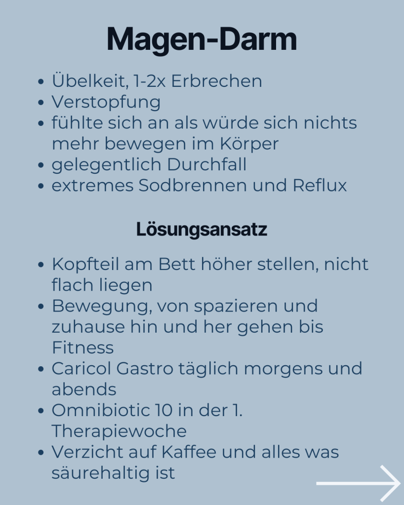 Vorsicht bei Hülsenfrüchten. Diese blähen sehr und das kann nach der Therapie sowie die erste Woche zu Problemen im Magen-Darm-Trakt führen. Hier sind zwar wichtige pflanzliche Proteine enthalten, diese können aber auch anders aufgefüllt werden.