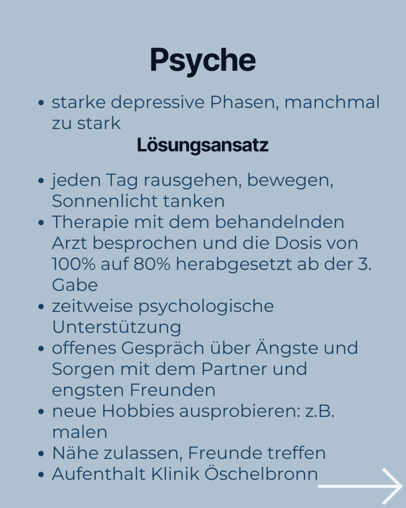Stellt Fragen, hinterfragt und bildet ein Team aus verschiedenen Teilen damit ihr gut aufgestellt sein. Bitte gebt immer ehrliches Feedback an euer behandelndes Ärzteteam, damit die Therapie so angenehm wie möglich für euch ist.
