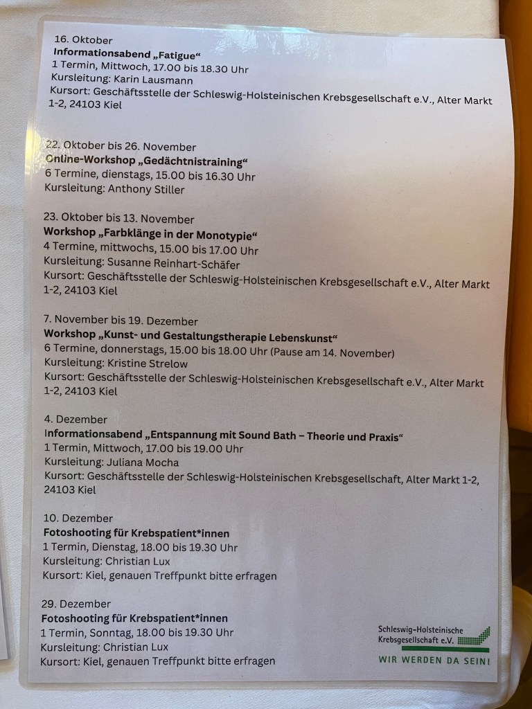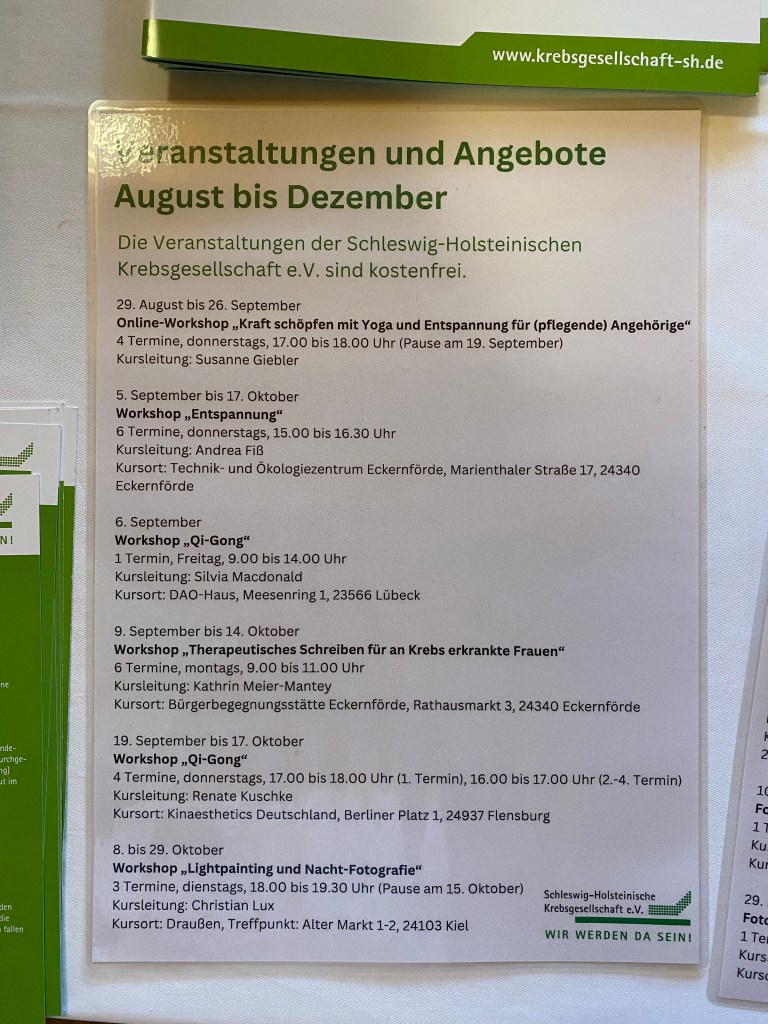 Es gab verschiedene aktive Vorträge, ich traf Alexander Greiner endlich mal wieder und wir plauderten im Garten des Erika Hauses. Er selbst schrieb ein Buch „Als ich dem Tod in die Eier trat“ über seine Krebserkrankung und gab einen Workshop für Männer. Er ist weiterhin als Speaker auch buchbar und leitet eine online Männergruppe.