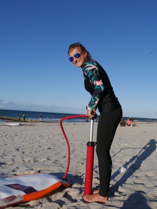 Das I SUP (inflatable SUP) benötigt Luft, um auf dem Wasser zu schwimmen :) Dafür gibt es eine Pumpe die dir anzeigt wieviel Luft sich bereits im SUP befindet anhand einer Anzeige auf dem Display. Jedes SUP hat an der Öffnung für die Pumpe eine Anzeige für den richtigen Luftdruck. Solltest du zu wenig Kraft zum Pumpen haben gibt es auch elektronische Luftpumpen die dein SUP, während du dich umziehst, aufpumpen. Meist ist die Pumpe im SUP Paket enthalten.