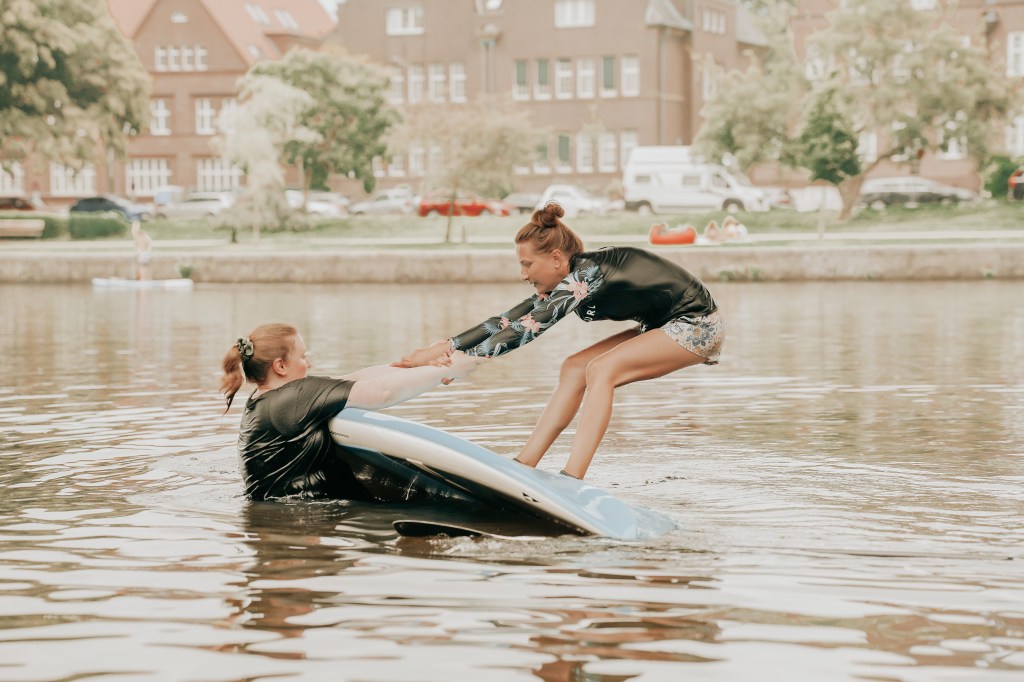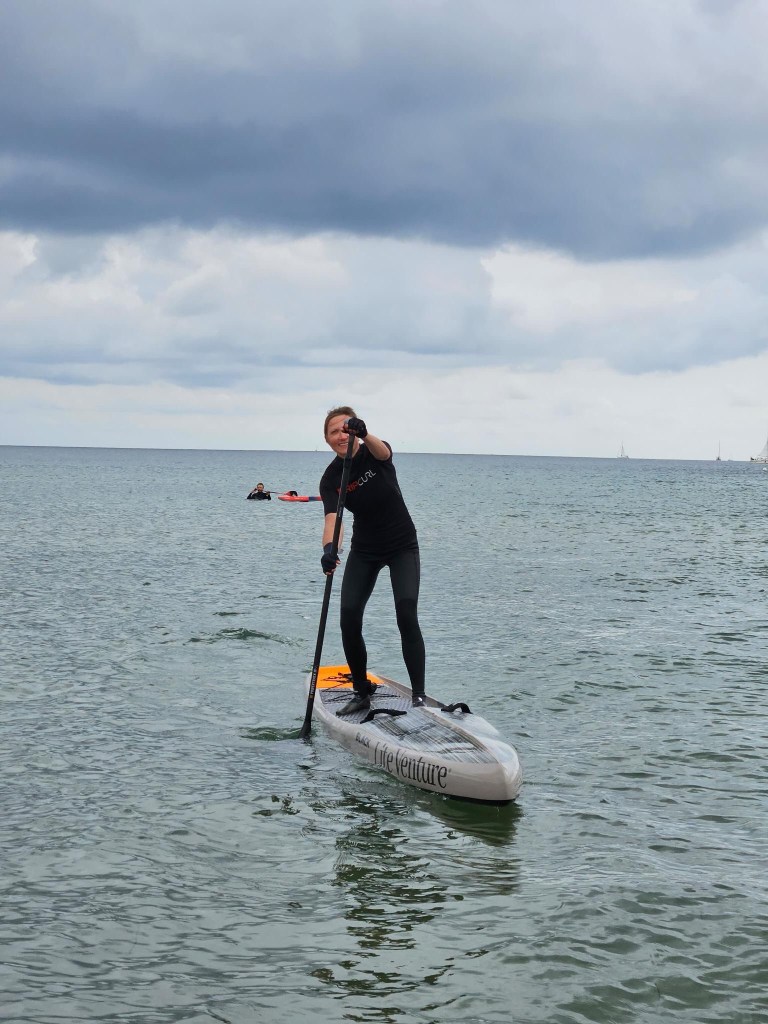 Seit 2019 bin ich ausgebildete SUP-Instructorin, trainiere Kinder und Erwachsene und nahm an Wettkämpfen teil. Ich liebe es, neues SUP-Equipment zu testen und mich mit Gleichgesinnten auszutauschen. Mein kleiner Van ist inzwischen mein mobiles Zuhause, mein „Aloha Mobil“, in dem ich mich ausruhe, Tee trinke und neue Pläne schmiede.